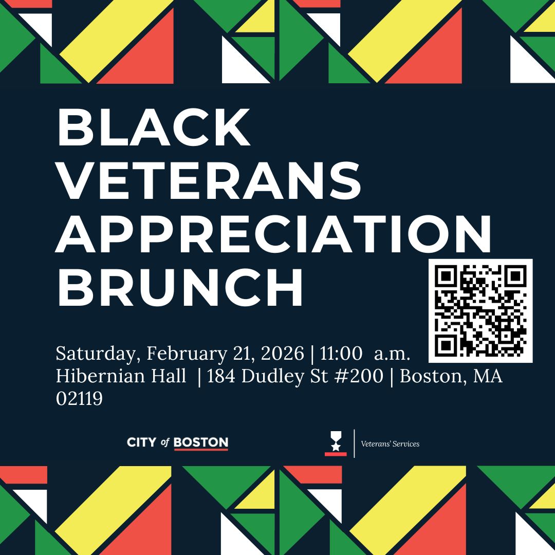 All are welcome to attend. Please RSVP using the QR code on the flyer or visit the City of Boston’s Veterans' Services page for more information.