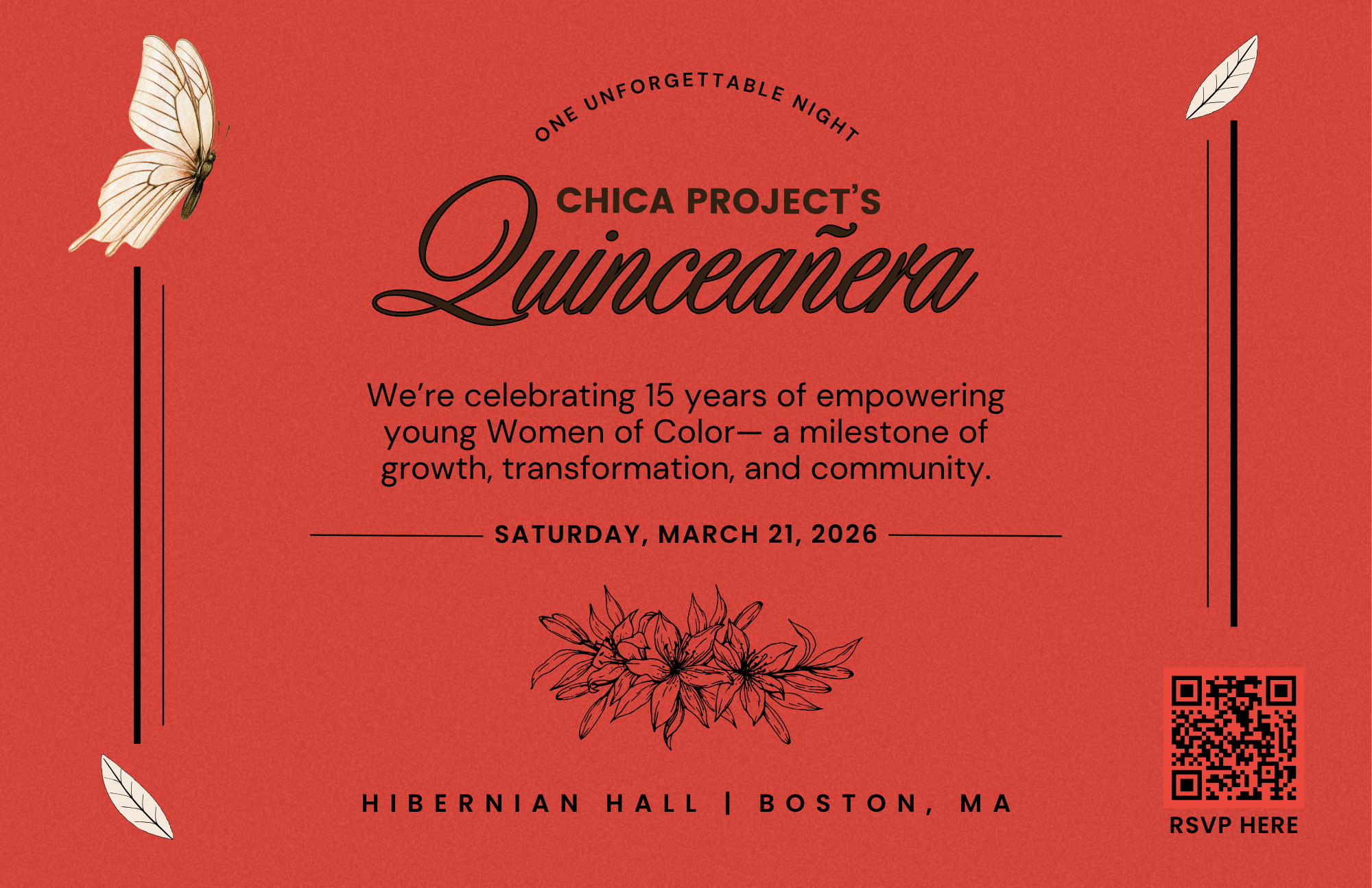 Join Chica Project for an unforgettable evening as we celebrate 15 years of empowering young Women of Color. This milestone Quinceañera honors a legacy of growth, transformation, and community.