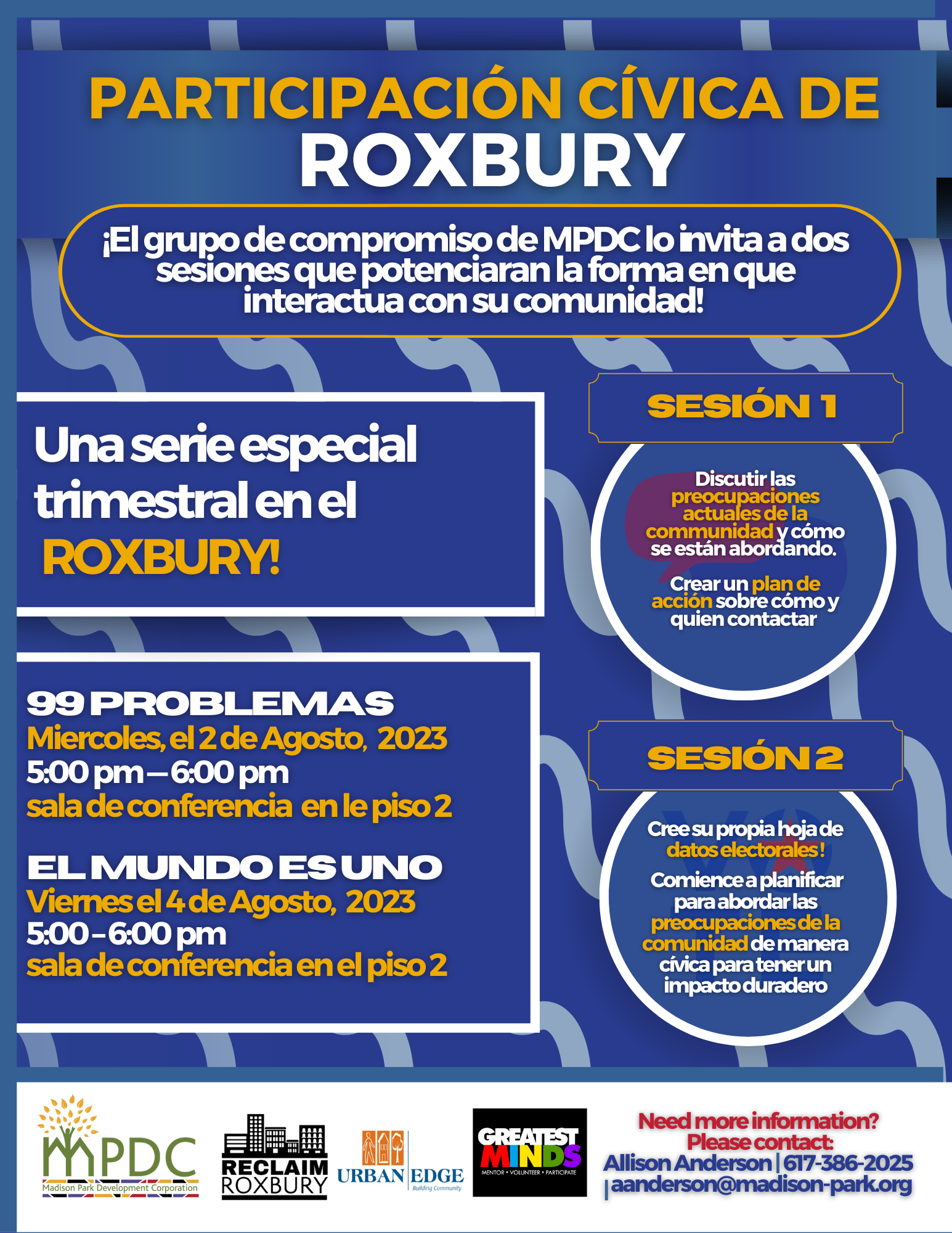 Meet your Roxbury Representatives and local civic organizations to discuss the future o