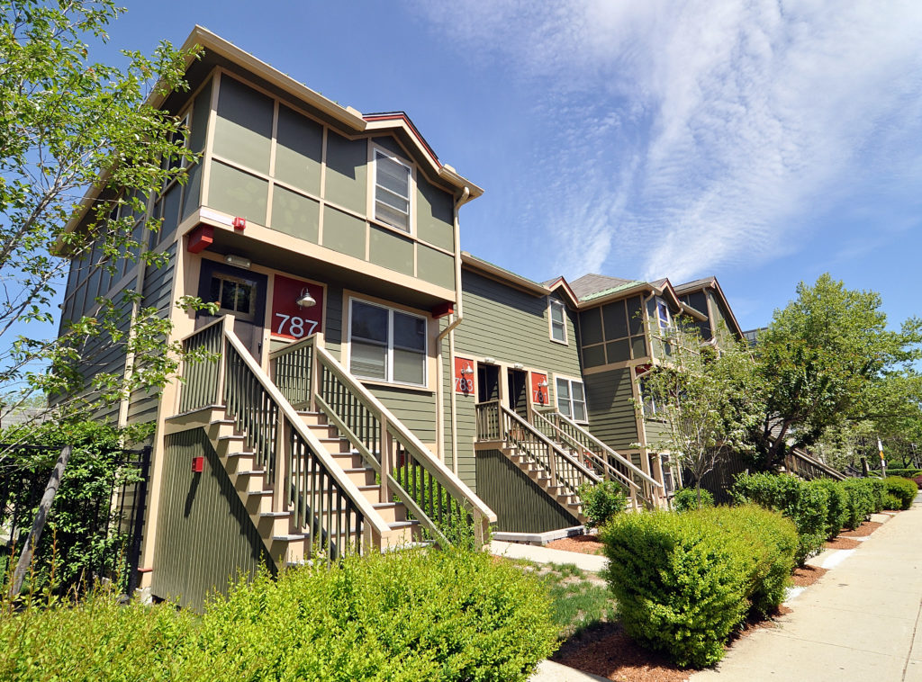This development consists of 43 affordable, new-construction homes and 2,715 square feet of ground-floor commercial space in two new, energy-efficient buildings. 207 Dudley Street has 31 one, two, and three-bedroom apartments, and 225 Dudley Street has 12 two—and three-bedroom stacked duplex units. Both buildings are handicap-accessible, have energy-efficient features and appliances, and are smoke-free.