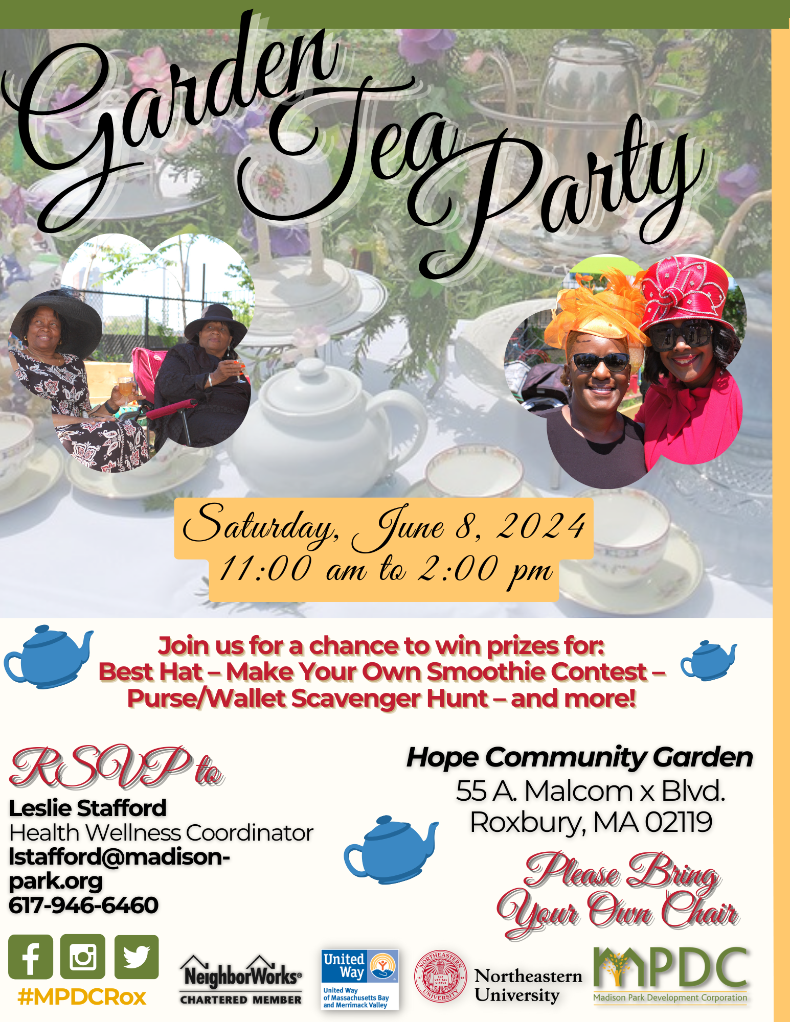 The Garden Tea Party promises to be a delightful gathering that brings together neighbors and friends in the beautiful Hope Community Garden setting – Click for more details!