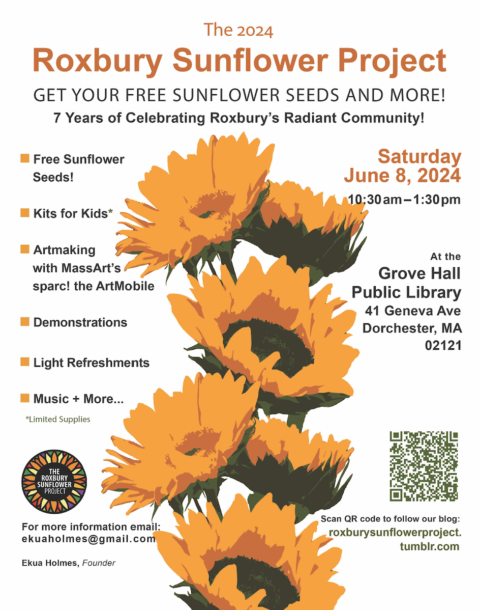 FREE EVENT: Roxbury Sunflower Project Social (happening at Grove Hall Public Library) | Hosted by Roxbury Sunflower Project