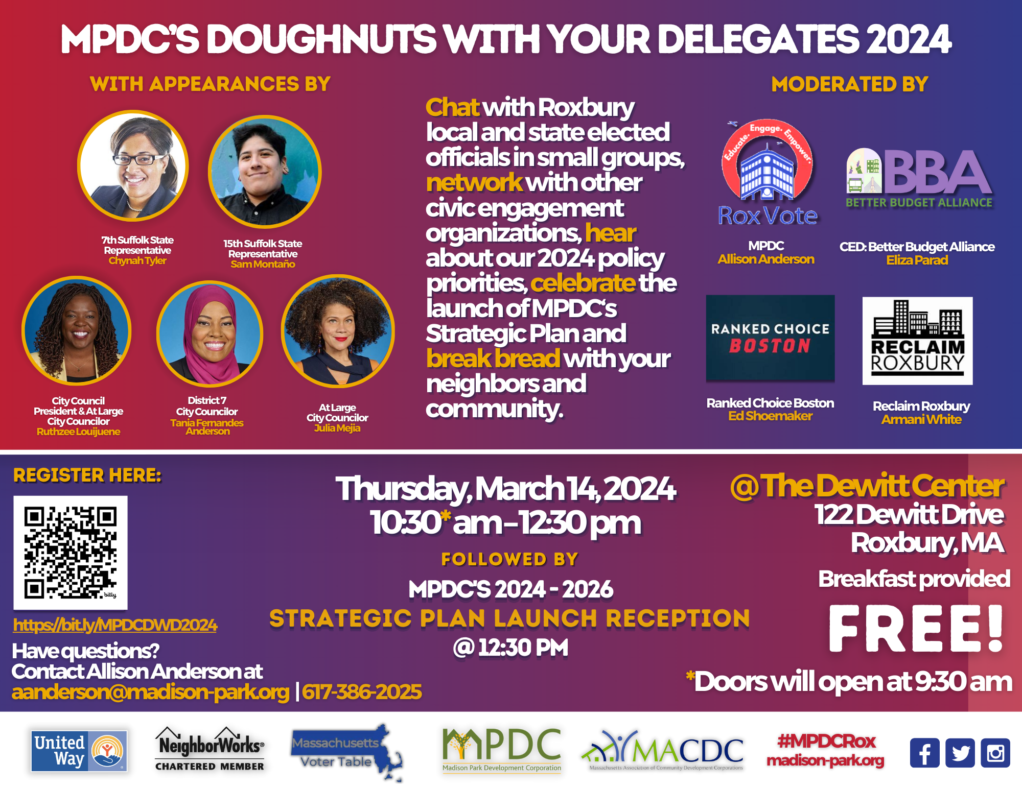 You are cordially invited to Sparks! A starry night in Nubian Square MPDC’s Annual Fundraising Gala THURSDAY, NOVEMBER 21, 2024 6:30 pm – 9:30 pm (Pre-Reception at 5:30) Hibernian Hall Ballroom 184 Dudley Street Roxbury, MA 02119 Madison Park Development Corporation welcomes you to a festive, creative black-tie (*OPTIONAL*) gala at historic Hibernian Hall! Enjoy […]