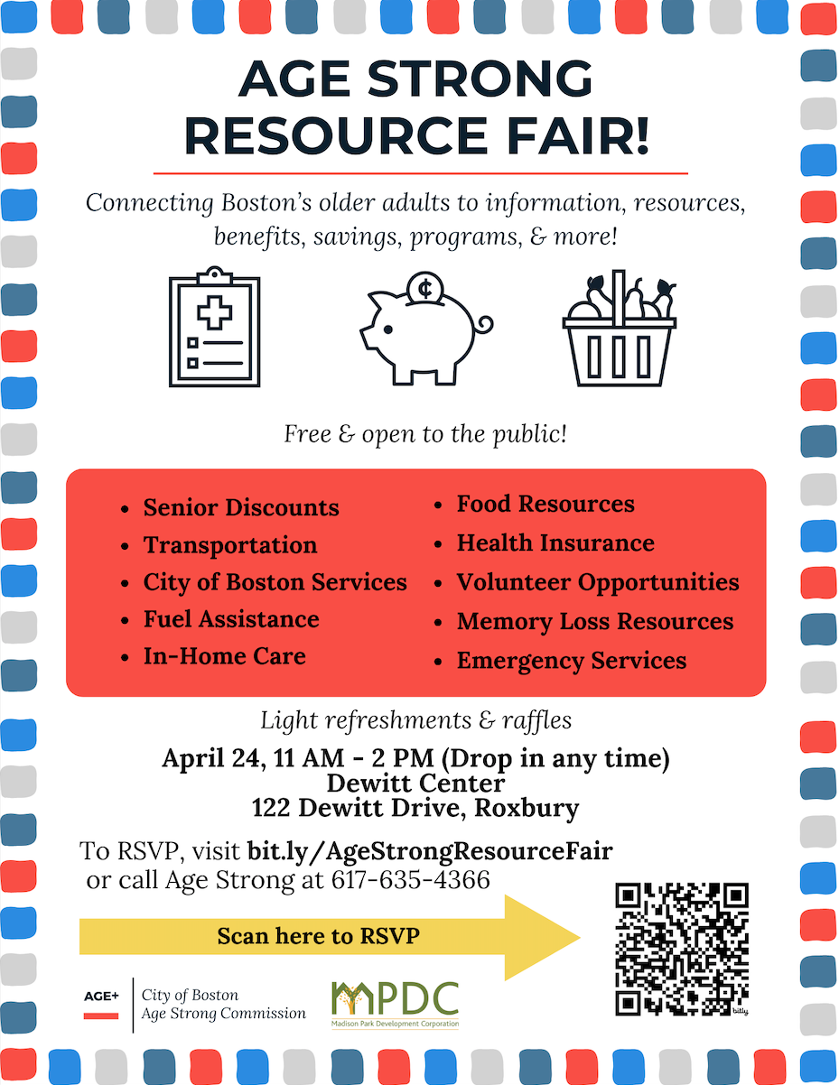 The City of Boston and The Dewitt Center have partnered up for the Age Strong Resource Fair, an event solely dedicated to connected senior folks to resources in and around Boston – Click to get more details + registration info!